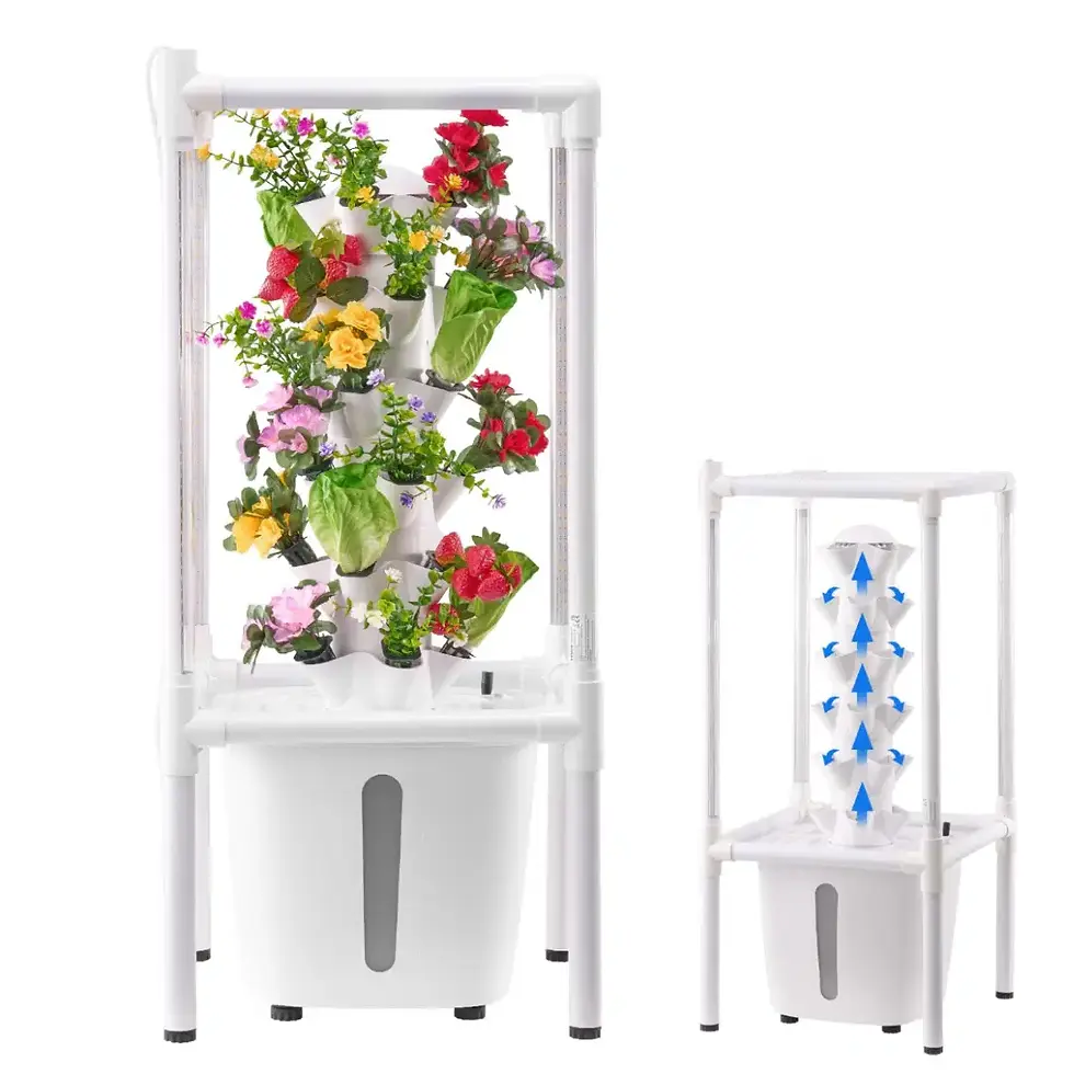 Hydroponics is simply described as growing plants without soil. Hydroponics allows you to control more of the variables including pH levels, lighting and nutrients for optimal plant growth and produce yields. Water is the main method of delivering the nutrients to the plant’s roots, combined with growing media to help support the plant. Hydroponically grown plants dip their roots directly into nutrient-rich solutions, so plants get more of what they need much faster and easier. Hydroponic farming can be used in locations where soil conditions are too poor to support farming, or where space is limited. It can be done anytime and anywhere!